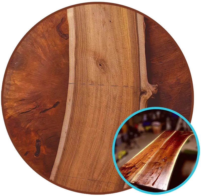 Explore our extensive collection of live edge slabs, meticulously crafted to showcase the natural beauty of Wisconsin’s finest hardwoods. From rustic coffee tables to stunning dining room pieces, these unique slabs provide endless design possibilities. Available in a variety of species and dimensions, our slabs are kiln-dried for stability and durability, ensuring your project stands the test of time. Let us help you bring the organic elegance of live edge wood into your home or business.